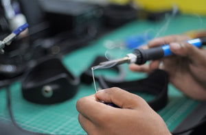 The RR1's chassis is made up of several different materials. The headband assembly is CNC machined Aluminium, sourced by our neighbor - Hindalco Industries. The Headband harp is Spring Steel. Aluminium assembly components are Anodized.